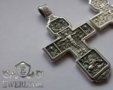 Изображено на кресте: Распятие Христово с предстоящими. Святая Троица. Архангел Михаил. Святые Воины. Тихвинская икона Божией Матери. Православный крест.Высота: 8 мм